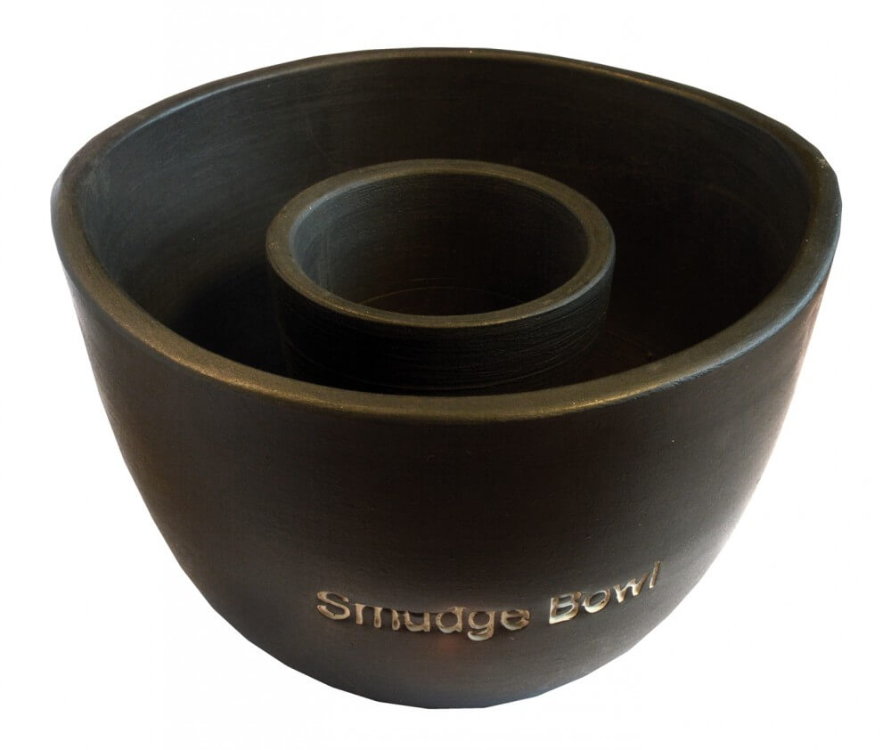 Der Smudge Bowl kann gut mit einer Hand gehalten werden, um mit der anderen Hand z. B. mit einer Räucherfeder den Rauch zu verteilen.