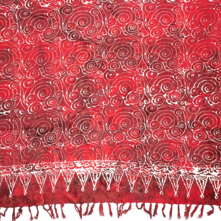 Hochwertiger Fransen-Lunghi aus Bali in XL-Größe; Nach traditionellem balinesischen Verfahren handgebatikt auf schwerer und dichter Viskose.